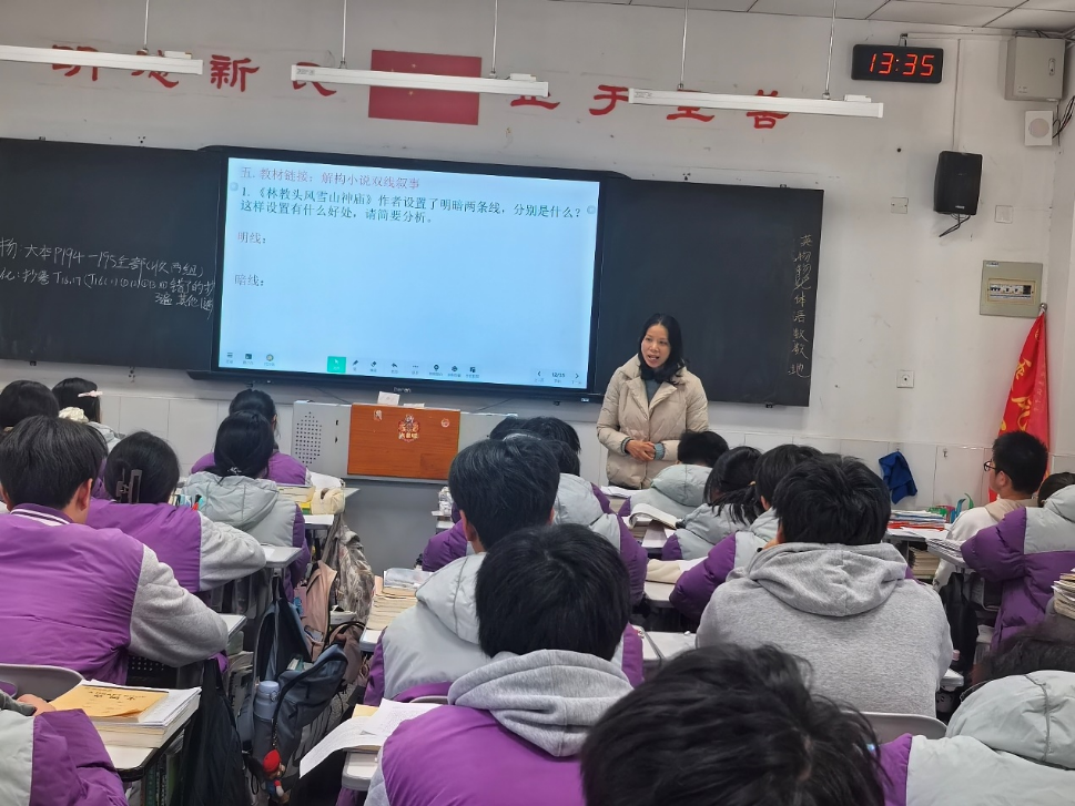 2025年11月25日(周二)第6节,语文组代玲俐老师在高三7班开设《小说叙事线索作用》的公开课。代老师从学情出发,以旧知建构解题思路,归纳总结拓展。思路条例清晰,学生参与度高,课堂反映良好。