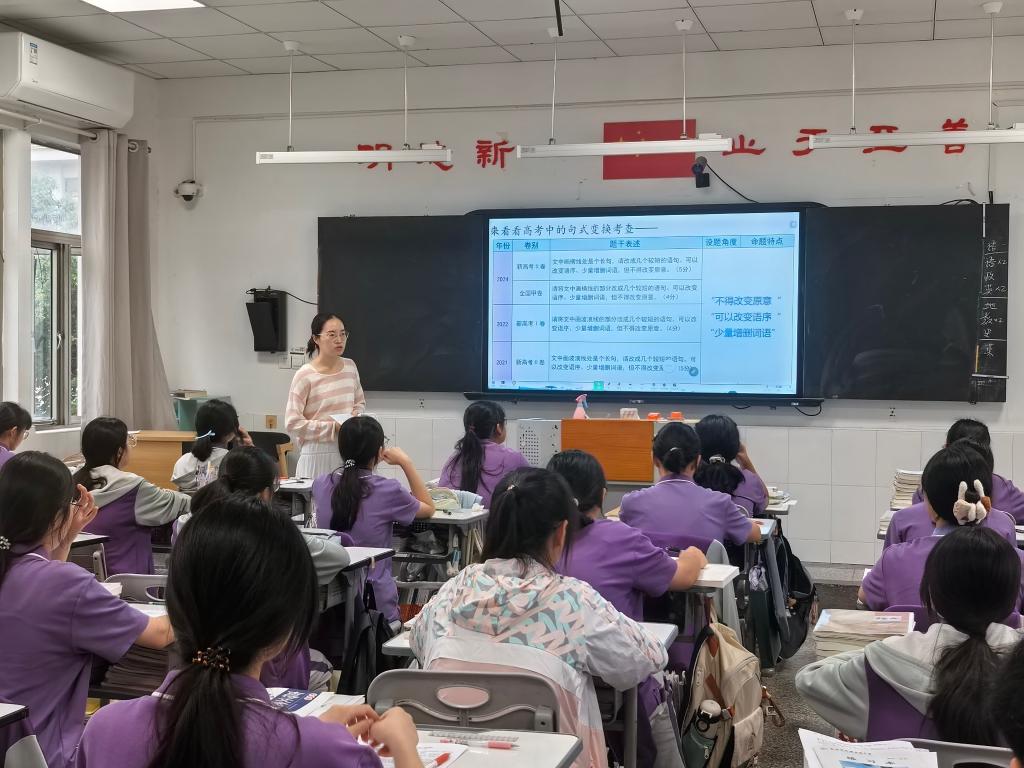 2025年10月14日第二节课,我校高三语文组朱凌云老师在高三18班开设公开课《句式变换》,课堂思路清晰,互动积极,氛围活跃效果良好。