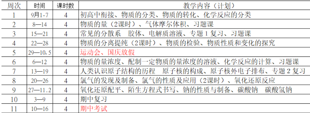 二、制定期中前教学进度  三、相关课标内容学习 《化学课程标准》(2017年)