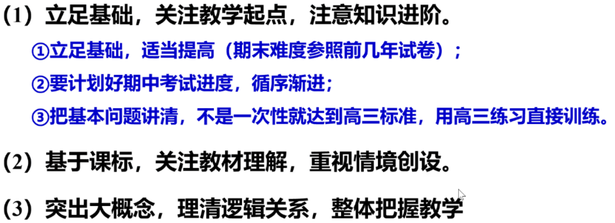 重点班学生适当扩展,直指高考要求,基础较好学生适当挖深。普通班学生则适当删选,以基础为主,力求合格考过关。 |