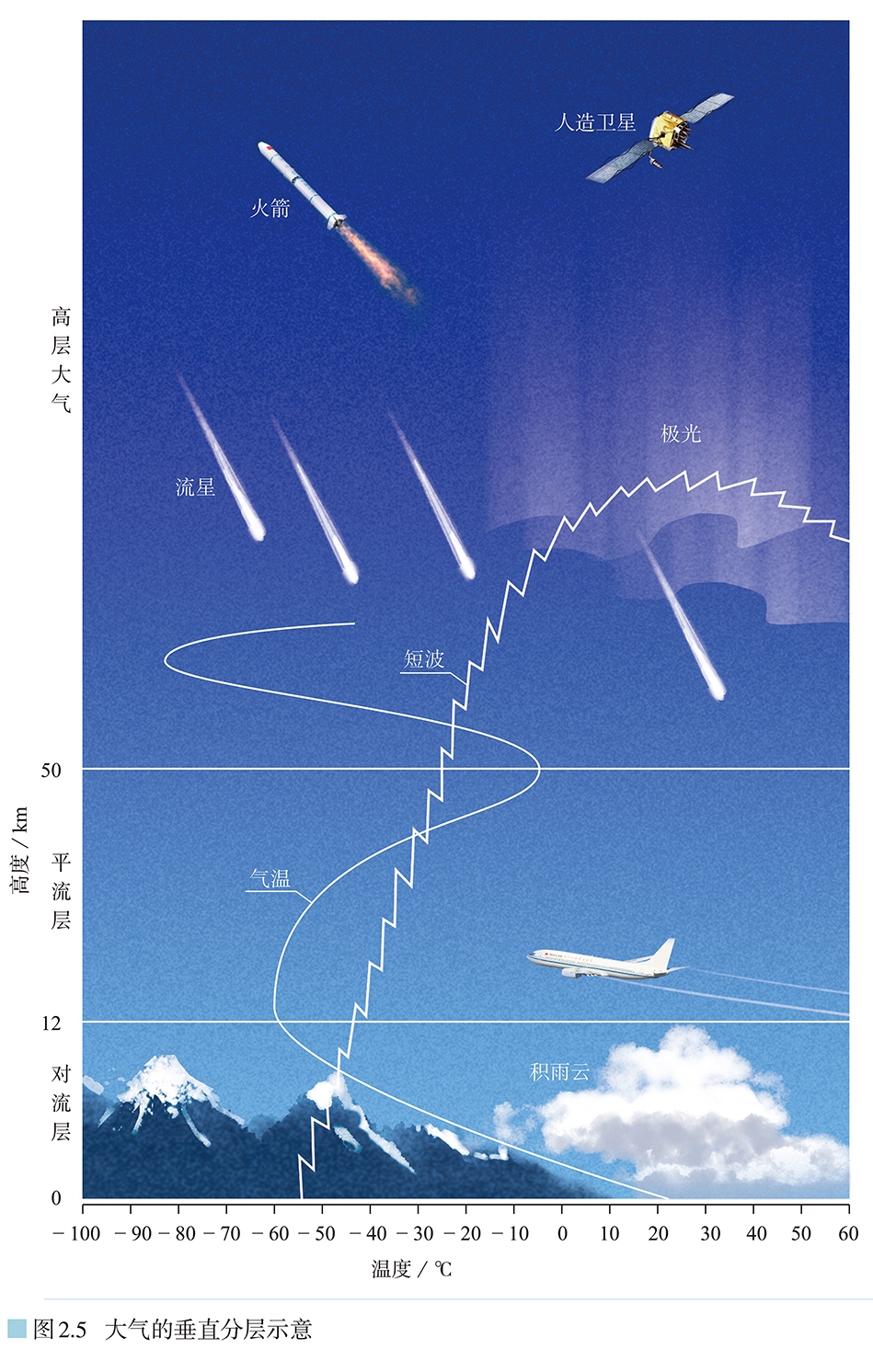 对流层: 气温随高度增加而递减(2)对流运动显著(3)天气现象复杂(原因①水汽、杂质多②下热上冷,对流运动旺盛。 平流层: (对流层顶-50KM):(1)存在臭氧层 22-27KM)(2)气温随高度增加而增加(3)气流以平流运动为主(天气晴朗,大气能见度高,有利于高空飞行)。 高层大气: 气温随高度的增加先降低后增加,(2)有电离层:反射无线电波。(3)有极光、流星现象(4)气压很低,密度很小 二、理论学习  |