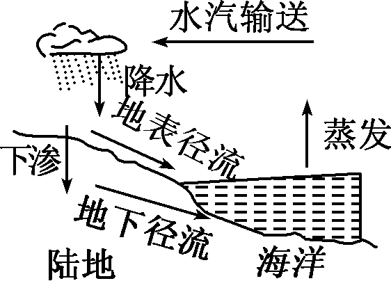 水循环通过蒸发、降水等一系列过程和环节,把大气圈、水圈、岩石圈和生物圈有机地联系起来 |