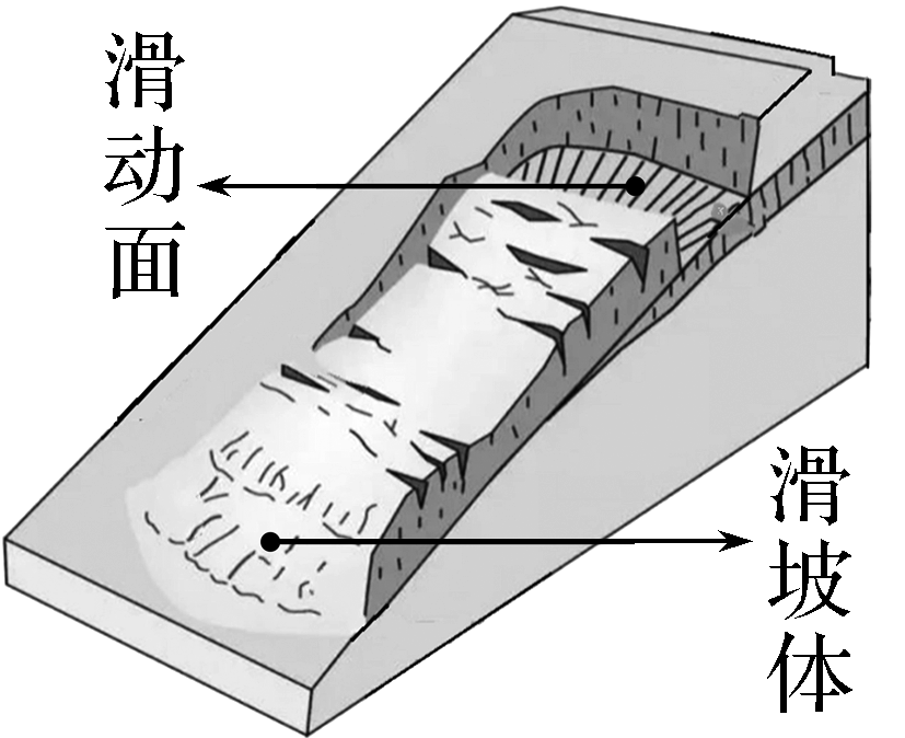 山地斜坡上不稳定的岩体或土体,在重力作用下,沿一定的滑动面整体下滑的现象 |
