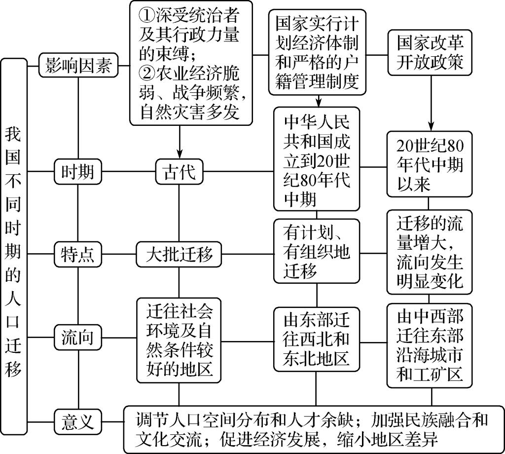 2. 我国不同时期人口迁移的原因、特点及意义  人口迁移的影响 1. 人口迁移对迁入地、迁出地的影响  2. 人口迁移对社会经济的影响